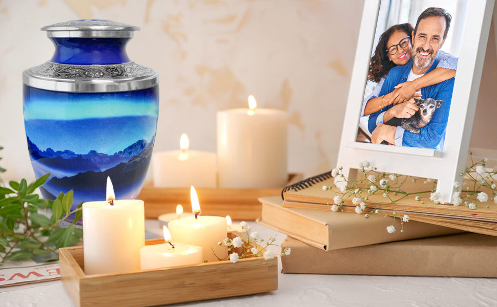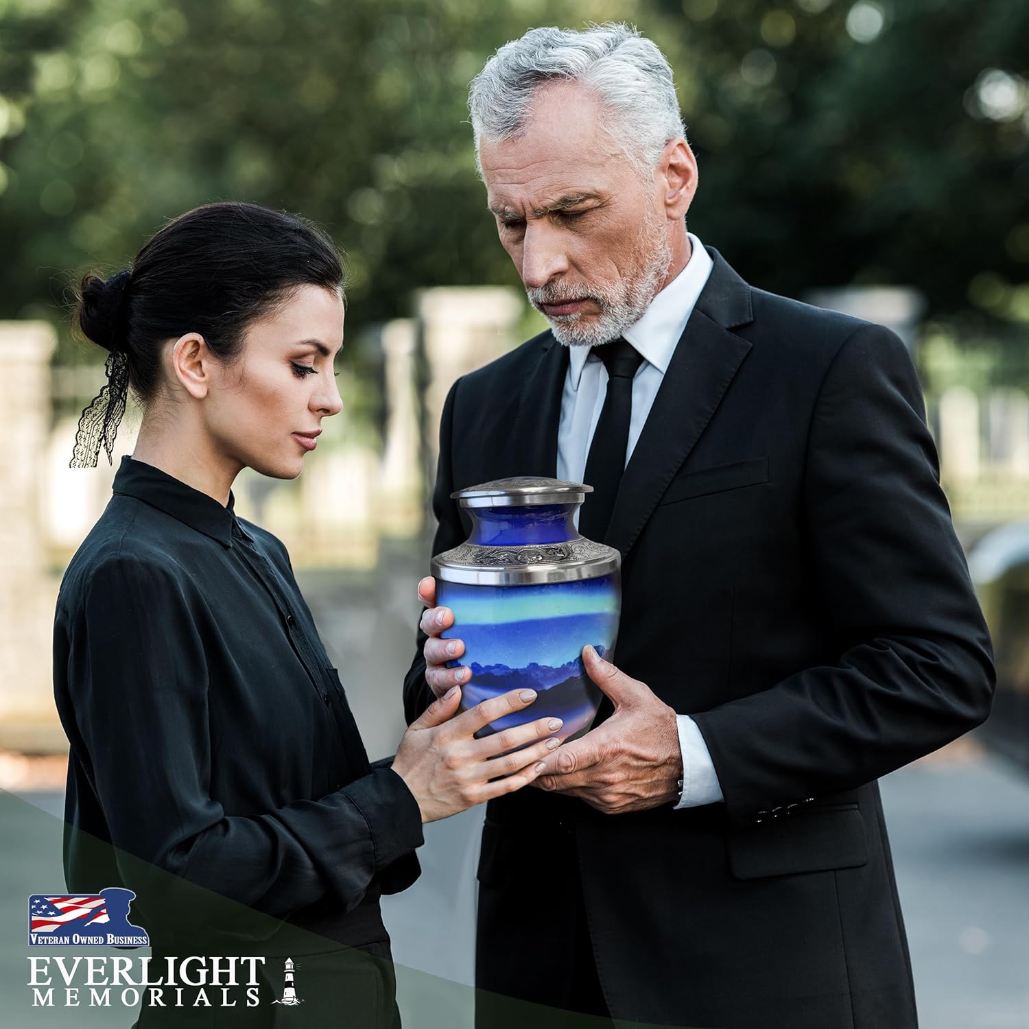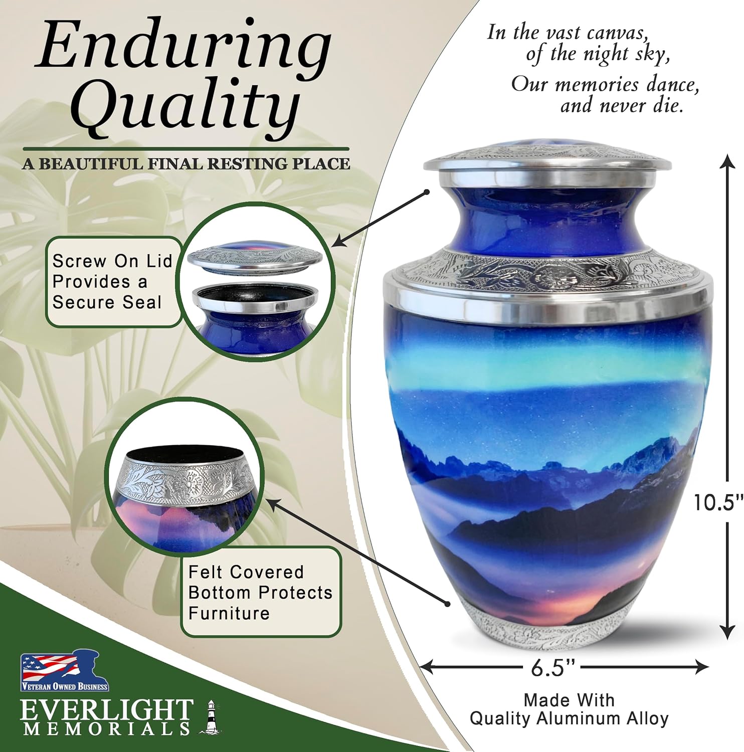 Aurora Borealis Cremation Urn for Human Ashes, Large with Velvet Bag
