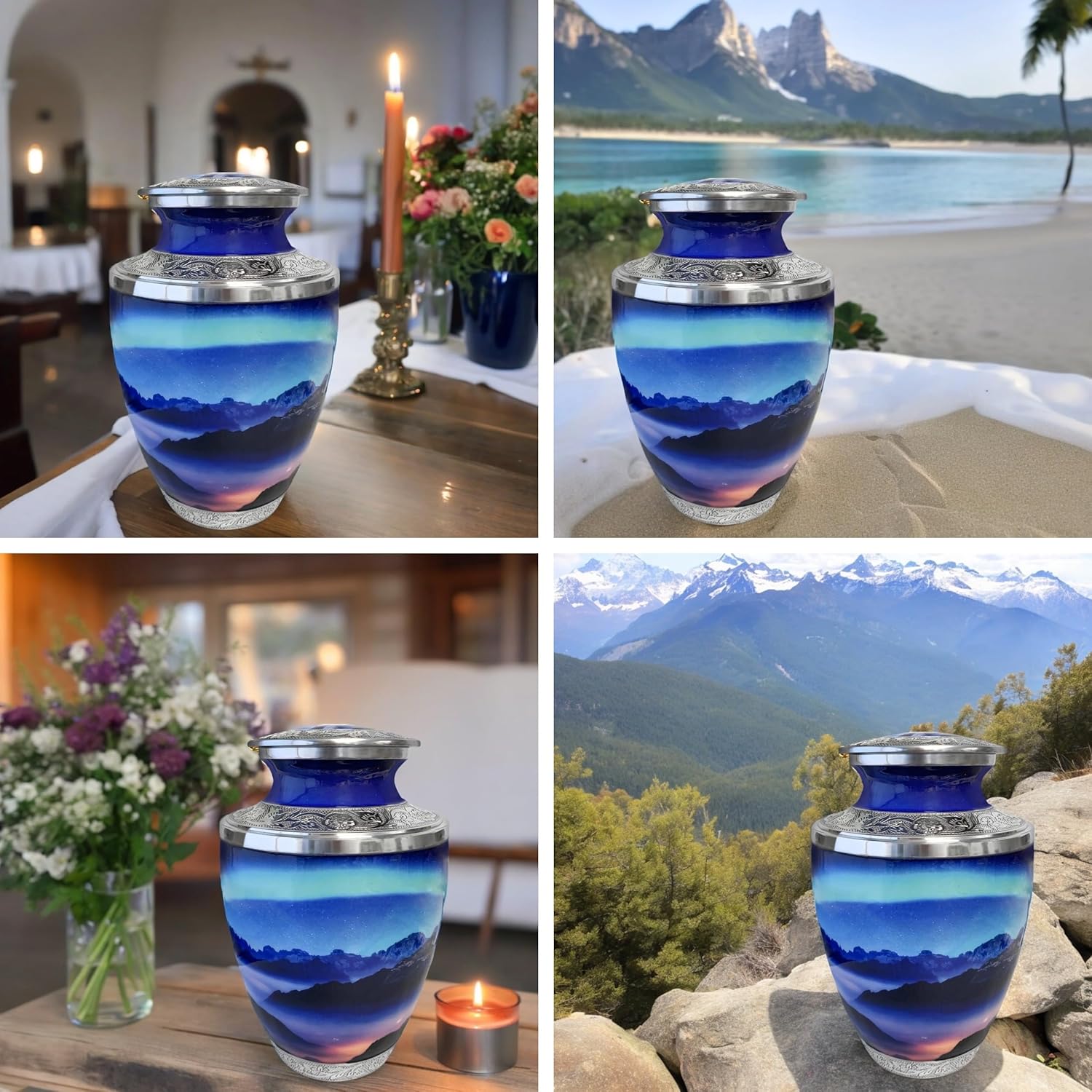 Designed with heartfelt consideration, this urns offer a beautiful tribute to your loved one, featuring landscapes like the northern light over Norwegian mountains, evoking memories of cherished moments.