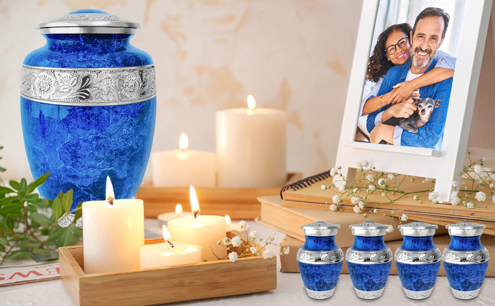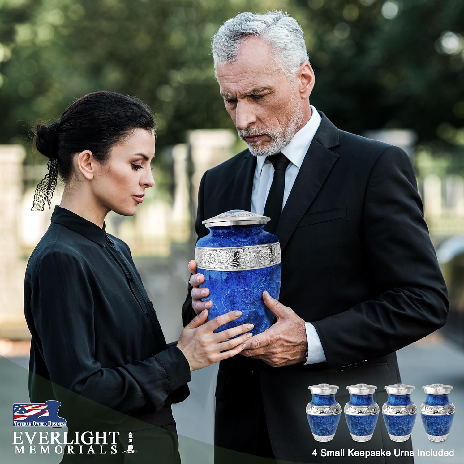 Blue Marble Adult with 4 Keepsakes Cremation Urn for Human Ashes