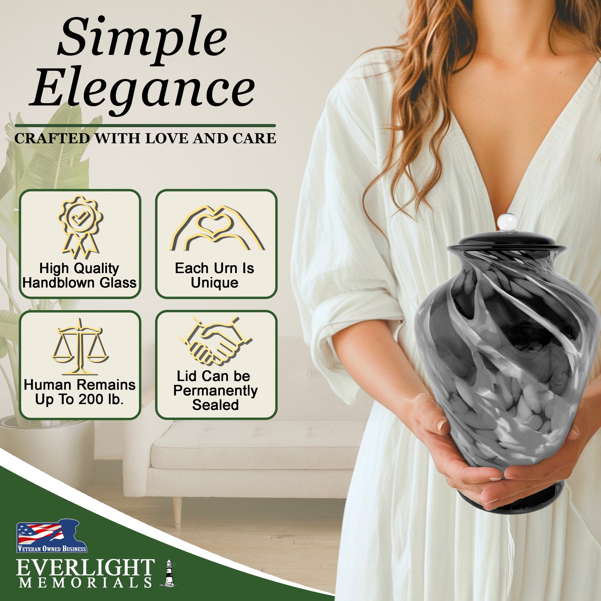 - ⚱️ Museum Quality Artistic Excellence: Everlight Memorials' Silver Radiance urn features an exquisite Murano style hand blown monochromatic silver pattern. Perfect for honoring a loved one with a spirited and vibrant legacy, this keepsake urn offers a comforting presence in any home.
