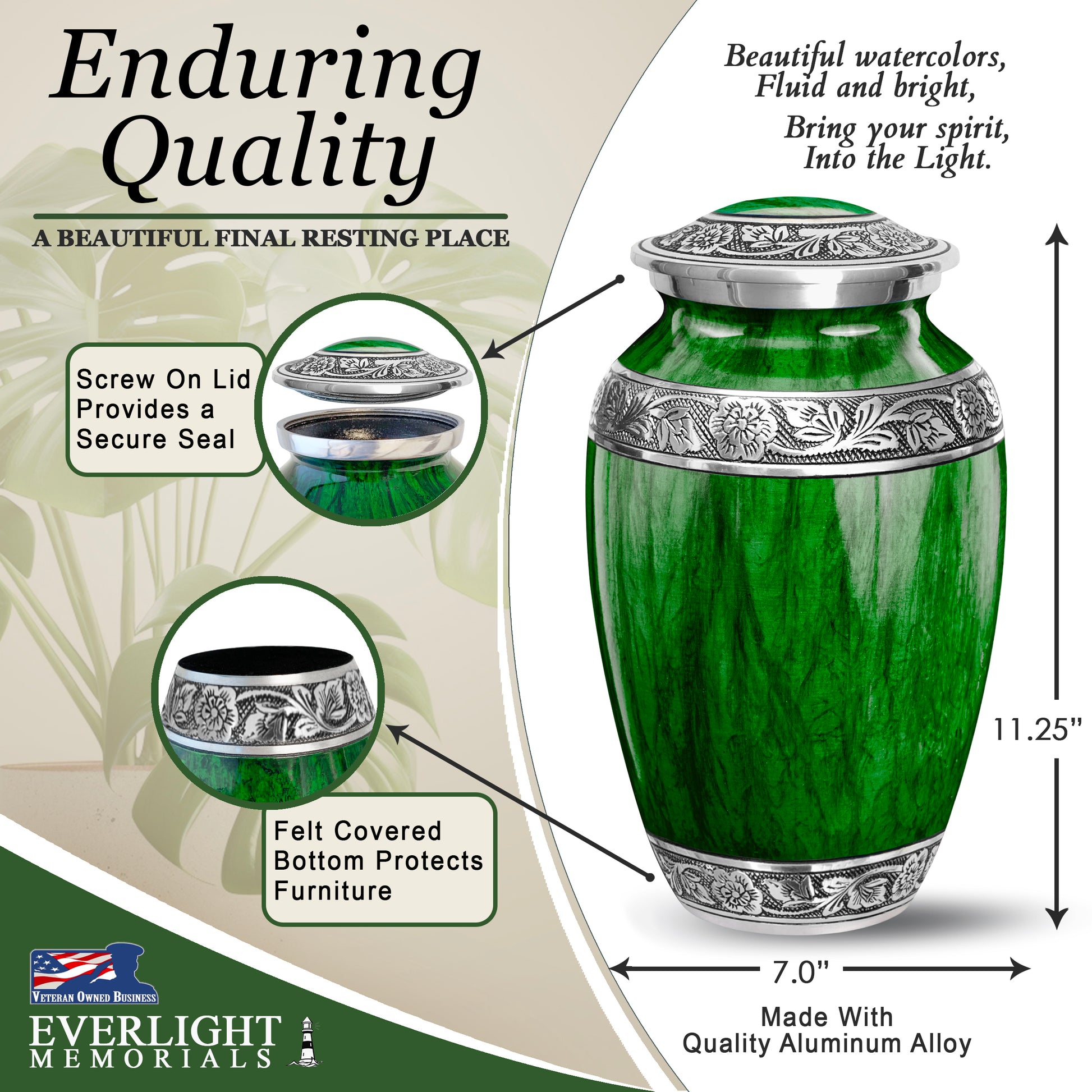 - Secure Closure: Features a threaded lid to ensure the remains are safely contained.